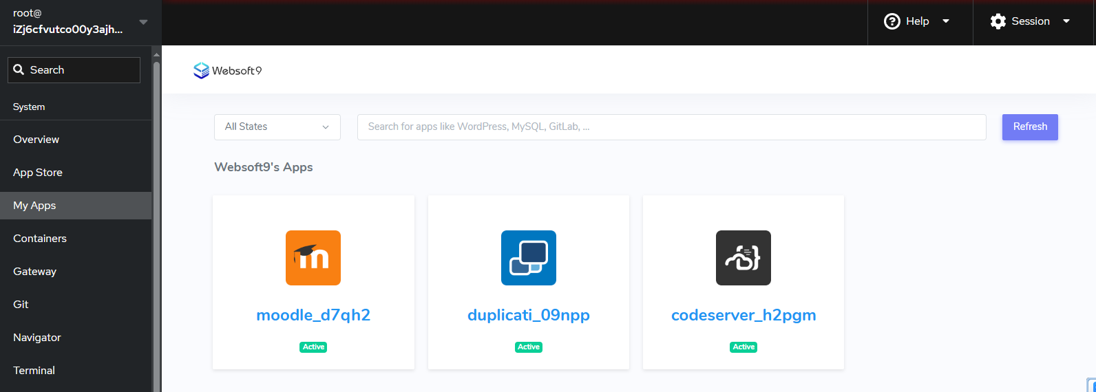 Deploy from Websoft9 App Store