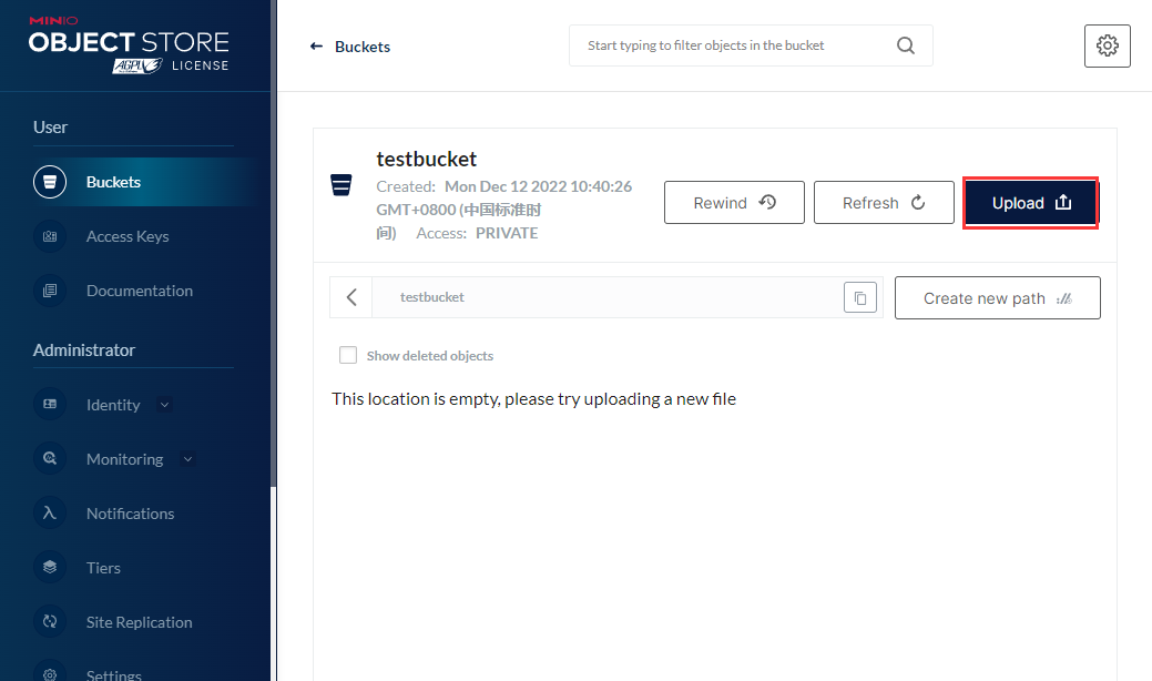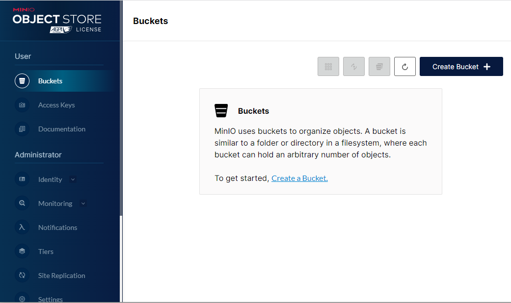 Log in to the backend and click Create Bucket to create a new bucket.